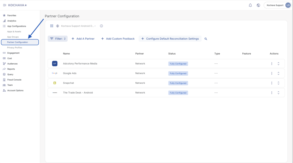 - Log in to Kochava.